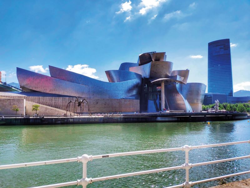 There are other eye-pleasing artworks blended into the cityscape, without having to wander very far. Along the river promenade, which is the best place to view the Guggenheim Museum, a little further upriver is the gracefully curvy Zubizuri Bridge, designed by Spanish architect Santiago Calatrava, while the La Salve Bridge, next to the Guggenheim Museum, provides a contrast to its flowing lines.