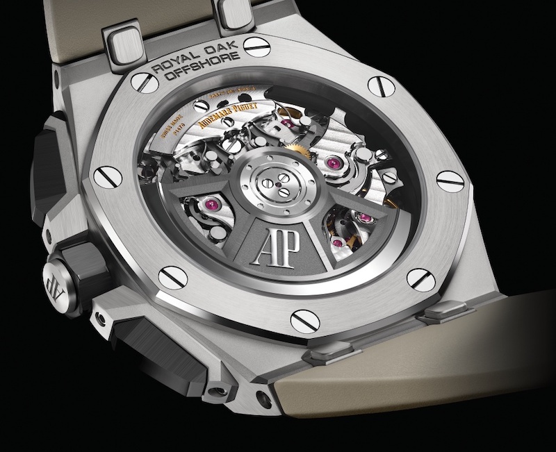 Having said that, the most prominent change on the dial is the rearrangement of the chronograph counters to improve legibility. Made possible by the new chronograph movement, the minute counter now appears at 9 o’clock while the hour counter is positioned at 3 o’clock. On the other hand, the date window has been shifted nearer to the inner bezel between 4 and 5 o’clock. The hands have been retouched slightly to look bolder and assertive, as is the logo, now in applied gold AP initials instead of the brand signature in full.