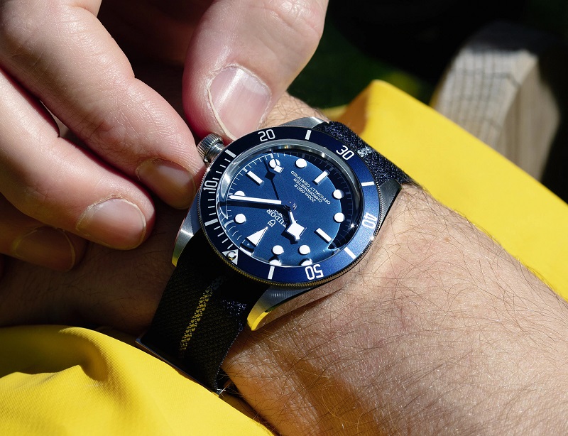 Tudor’s straps for its diving watches are unique for its lineage — woven in France on 19th century jacquard looms by the Julien Faure company in the Saint-Étienne region, its manufacturing quality and comfort on the wrist are said to be exemplary. It certainly did feel very good on the wrist, was sturdy enough to support the weight of the case and was completely dry within an hour of exiting the water. I would have liked it to dry a little faster, which I imagine would be the case in dryer climes than ours.