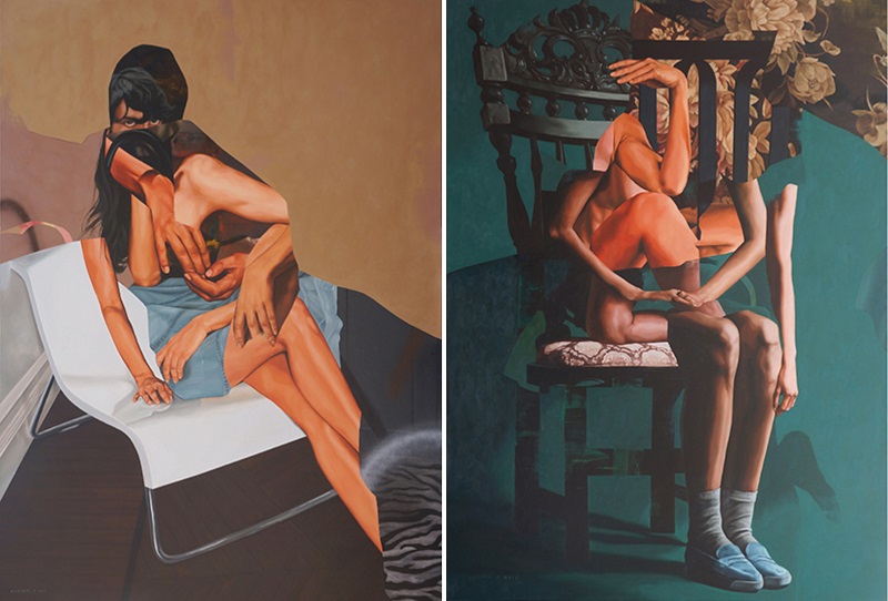 Indonesian artist Wedhar Riyadi’s work focuses on the stitching of reality for the ideal body image, populated by foreign culture assimilated into local entertainment. He starts the process with an image collage of body parts gathered from mass media. He then blurs the lines of realism and fantasy by reproducing the collage in oil painting. The artworks alludes the ease of snipping and stitching an ‘ideal figure’ to the extent of creating a fantasy, through the ease of applications in the contemporary internet age.