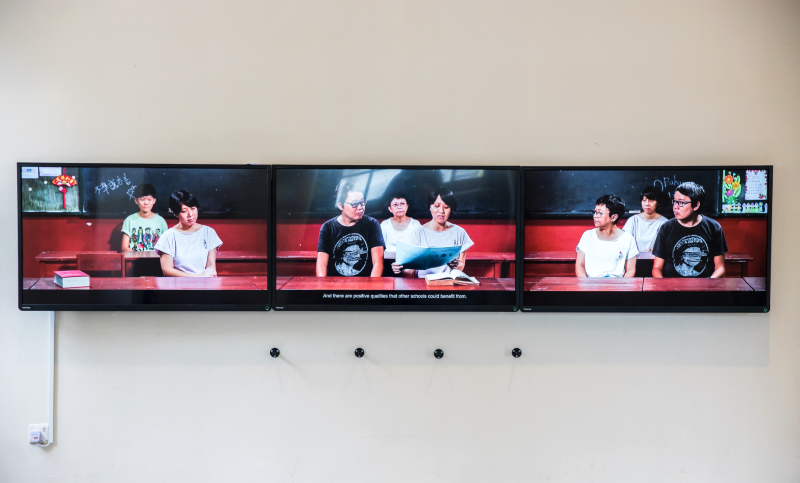 Penang-based Okui Lala presents a three-channel video installation that simulates a multilingual classroom setting (Photo: Okui Lala)