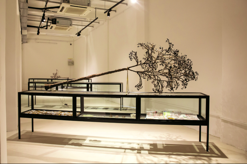This work in Gillman Barracks’ Block 22 is a story of two trees. The Hopea Sangal is critically endangered in the region and was believed to be extinct in Singapore until one day, in 2002, a botanist spotted one by the side of the road. Alas, the tree was struck by lighting days after and within two weeks, it was chopped down, not because of the damage, but rather, a property management company was worried it may fall on a building, even though it was confirmed to be healthy.