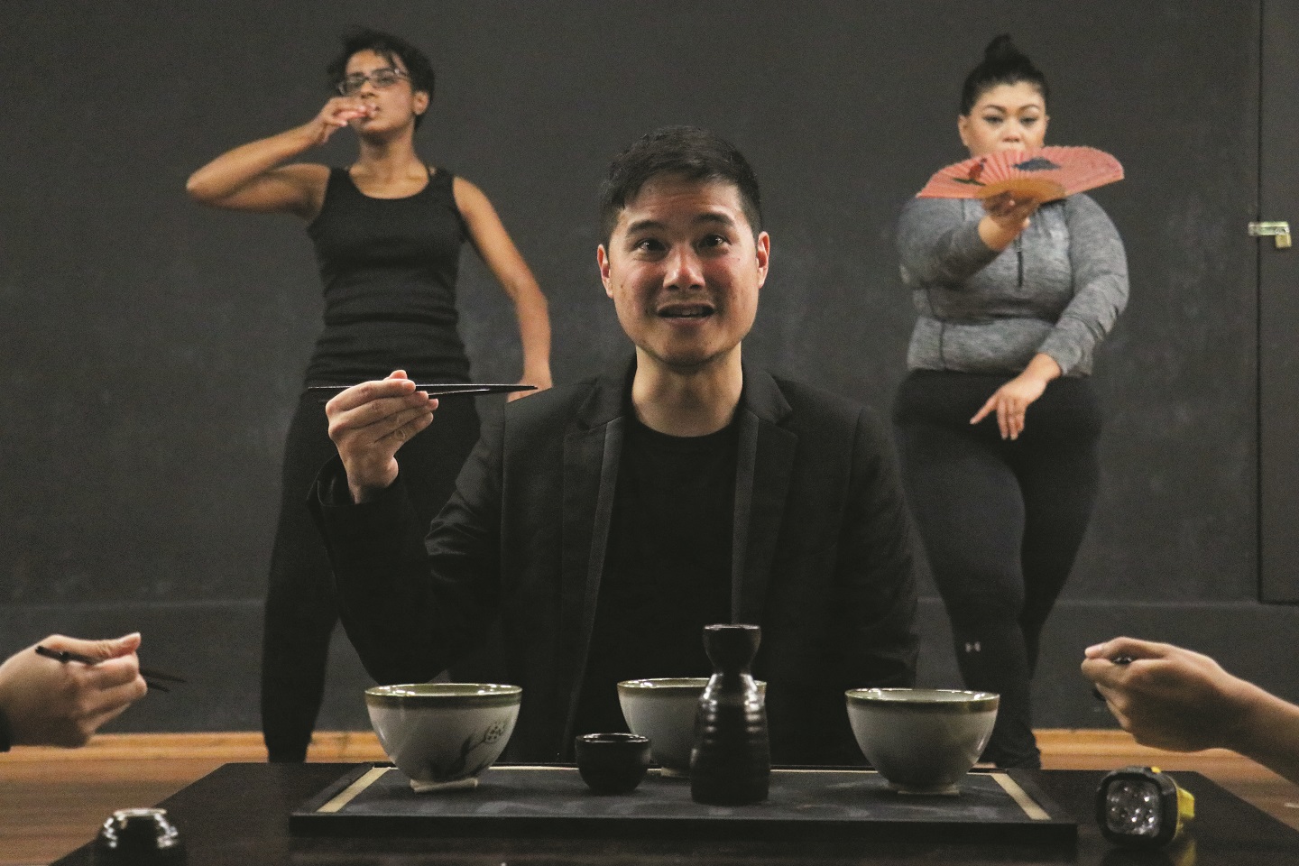 Jon Chew (middle) plays salaryman Ido in The Bee, directed by Kelvin Wong. (Photo: klpac)