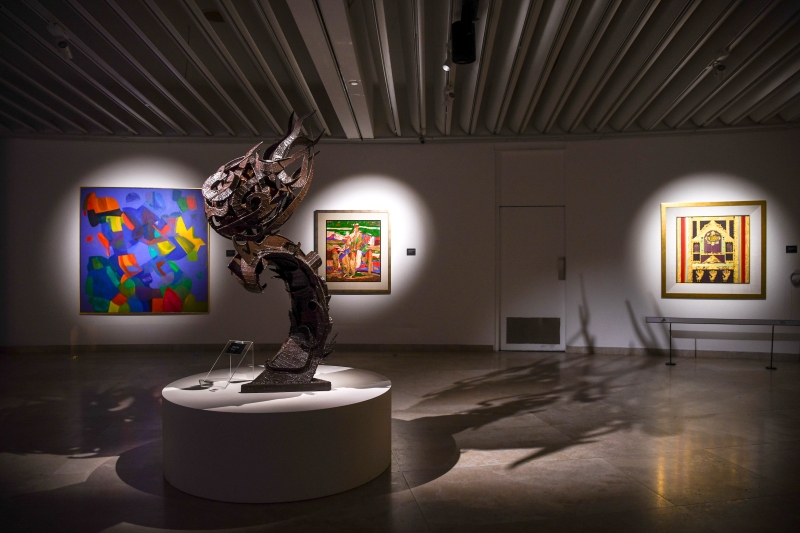 As the world grows increasingly frenzied, the exhibition encourages respite — an invitation to pause and take in the relief offered by casting one’s gaze upon beauty. “Even the way we arranged the art this time is to physically give breathing space. Nothing is positioned too close to each other. In other areas, we opened up the blinds to flood the space with natural light, letting guests take in the outside world, with views of Jalan Ampang and the park’s fountains,” Jamal says. “When you come by, be sure not to rush, though. Bring along your airpods so you can have your own music streaming on your phone. Walk in, enjoy the art, pause at the ones that resonate and enjoy your viewing experience accompanied by the power of sound. Then, just let your imagination run musically!”