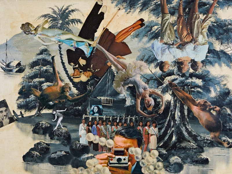 “Scope”, “vision” and the irrepressible “eye” are aspects that give A Third Eye all of its vitality. That, and a squint into history. Earlier works bear traces of tentativeness, surely a testament to the excitement and pleasure of trying. Social commentary — such the pervasive trend in the time of Unglehrt’s nurturing — offers insights into social obsessions. Selling Malaysia, a collage on an anonymous painting, features the popular TV serial Dallas’ J R Ewing (played by Larry Hagman), replete with a wicked grin and wearing a 10-gallon hat, which displays all the symbols of “development” sitting on it. This, against a simple watercolour painting of a kampung.