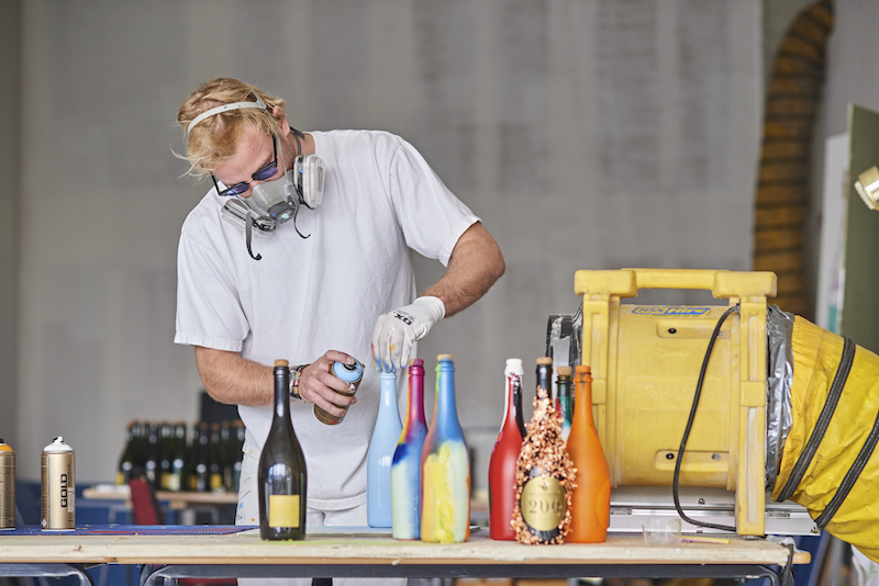 The installation consists of 200 champagne bottles that Hall individually hand-painted in his bright and energetic drip style. Each bottle is unique, with a design inspired by each of the 200 hotels — including the new InterContinental Shanghai Wonderland, where this remarkable art piece is now on display. The finished bottles are suspended together in a stunning pattern that reveals the number 200. The installation will be travelling to a number of InterContinental hotels around the world over the next few months. In addition, Hall is creating a bespoke Haut de Gamme painting to mark this milestone, with a number of limited-edition prints.