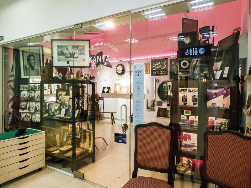 With the support of the Kreatif KL grant by Think City, Lim set up shop at GMBB in Bukit Bintang in September 2025, transforming a quiet corner unit into a cosy studio. Shelves are decorated with vintage knick-knacks, walls are covered in monochromatic photos and a soundtrack characterised by Malay oldies whisk visitors away to a forgotten era.
