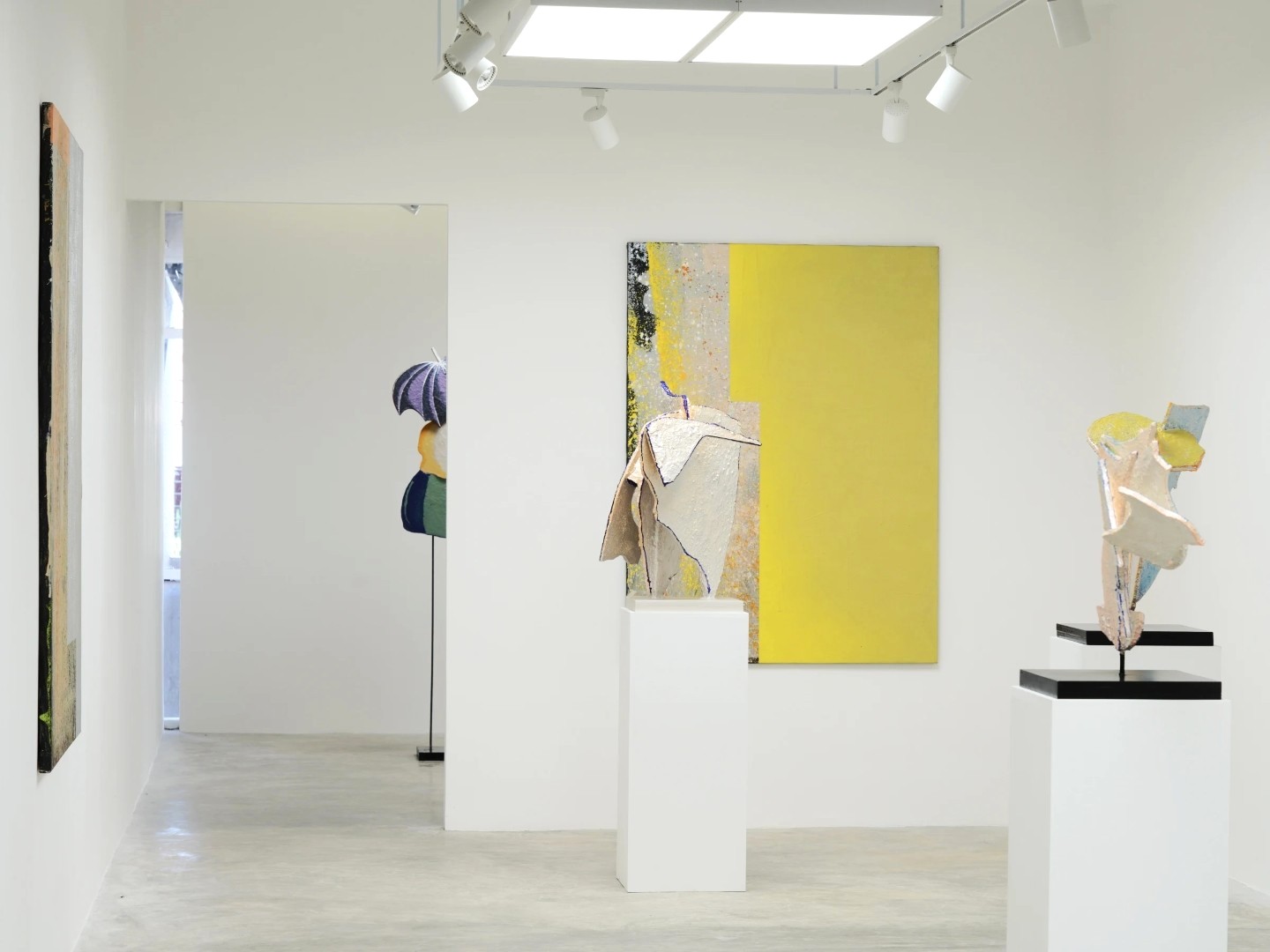 Around the same time, I visited a Franz West exhibition and something shifted. His forms gave me permission to embrace awkwardness, to be playful again, to loosen the grip. It reminded me that sculpture can be direct, physical and humorous — without needing to resolve anything. That influence, combined with the environment I was living in, began to shape how I saw figures, structure and presence. For me, it usually takes about three years to develop a new visual language that feels honest — something which reflects who I am in the present, not who I was. This exhibition is the outcome of that slow unfolding. The paintings and sculptures were built in tandem, like two voices exploring the same idea from different registers.