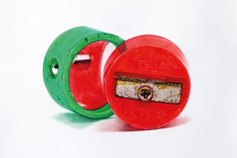 She is thrilled when people relate to her work and start talking about their own yellow rubber ducks, sharpeners, toy soldiers, bottle caps, marbles and Slinky. Her medium, colour pencils, engages on another level, too. Who has not clutched a handful of that common stationery and imagined herself an artist?