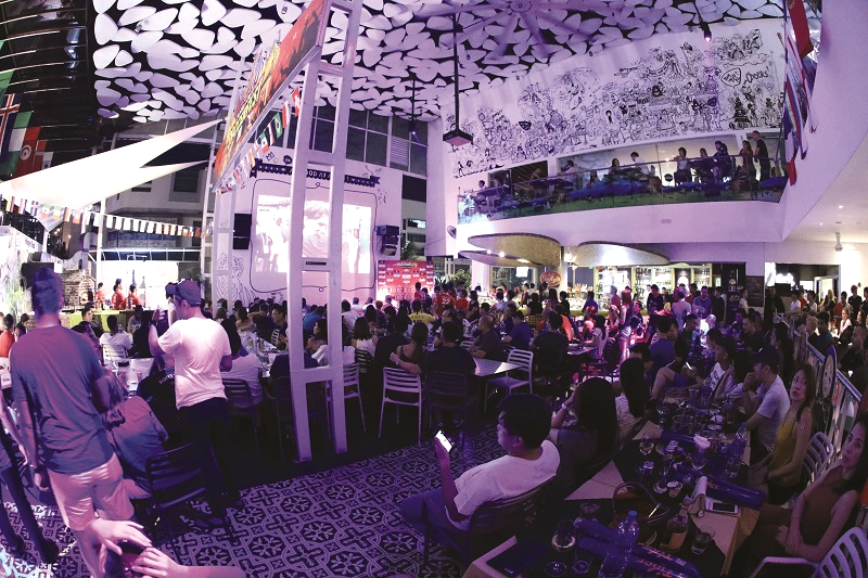 With the tag line: “Everyone’s Sports Bar”, Hall of Fame (HOF) produces a friendly atmosphere for all. This sports bar has a big screen projector and multiple TV screens to show the beautiful game. HOF is a great place to relax and watch your favourite team battle it out on the pitch while the soft-dart machines, a foosball table and a beer-pong table are there to keep the entertainment going. Stocked with all your favourite beers, HOF offers an appetising menu, including perfect game bites such as siew yoke, pigs in blankets and piggy fries (luncheon meat sticks).