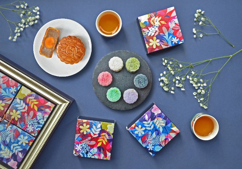 Chef Karen Chai puts a unique spin on the traditional Cantonese mooncake with unconventional flavours and textures. Made with quality ingredients and natural colouring, the floral mooncakes are hand painted with edible gold ink and are available in six variations. The Baba Nyonya option is set apart from the rest as it incorporates savoury ingredients — belacan, dried shrimp chilli and chicken floss with lotus paste — which seems intimidating, but is an enjoyable change from the usual cloying mooncakes. But if you insist on something closer to a dessert, try the Honey Longan or Chocolate Peanut Mochi.