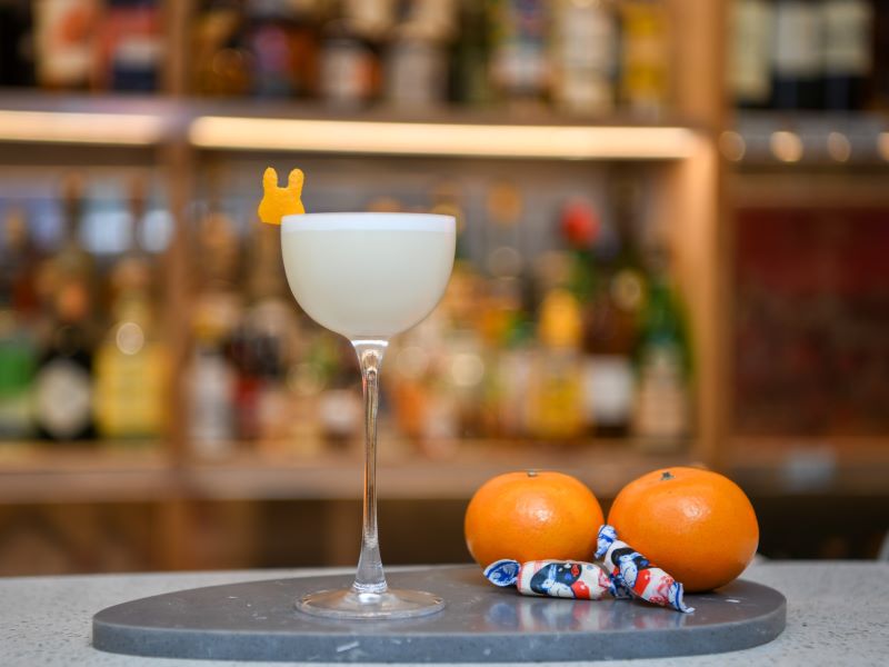 - Garnish with an orange peel and savour alongside yee sang — just be wary of stray bits flying into your drink.
