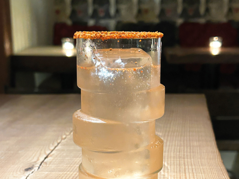 For a bright and invigorating first pick, Arigato El Gatto (¥2,200) brings a bit of Mexican influence, as indicated by its steel chair-wielding, luchador mask-wearing mascot. The drunken-paw master’s tipple is a tall, appetising mix of soju and refreshing watermelon undercut with the smokiness of mezcal and a tinge of heat from chilli and Tajimi (Tajín seasoning and shichimi tōgarashi powder) on the rim. The result is clean, juicy and highly chuggable, with the spicy tickle and delightful bubbliness recalling a lightened-up Michelada or somaek.