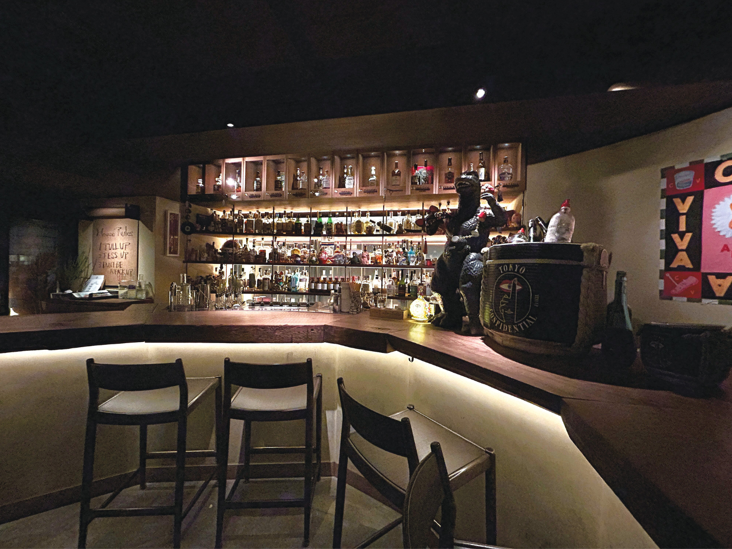 Warmly illuminated wooden interiors, along with funky trinkets, make Tokyo Confidential a lighthearted locale (All photos: Quincy Tan/The Edge)