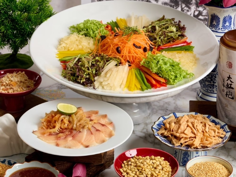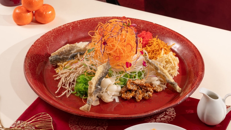 Tao Chinese Cuisine at InterContinental Kuala Lumpur, which specialises in Cantonese fare, rings in the new year with a slew of mouthwatering six- to nine-course lunch and dinner sets, but its yee sang menu also deserves a shout-out, featuring exquisite topping choices that will instantly elevate the dish. This offering is especially perfect for seafood lovers, since you can top up with more ingredients such as snow crab leg, Atlantic salmon, scallops, baby octopus and jellyfish. Or, you can opt for roasted London duck (pictured) to make it richer in protein.