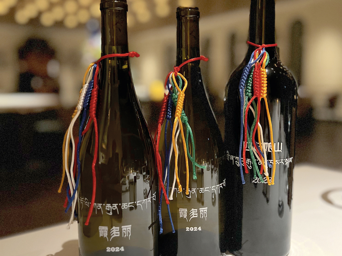 Those with an interest in Himalayan culture and traditions might notice the charming adornment of the Buddhist five-coloured sungkü braid around each bottle neck. The different colours of the symbolic accessory represent the five elements: blue (sky — wisdom and open-mindedness); white (air and wind — purity and calmness); red (fire — life force and transformation); green (water — balance and harmony); and yellow (earth — grounding and stability).