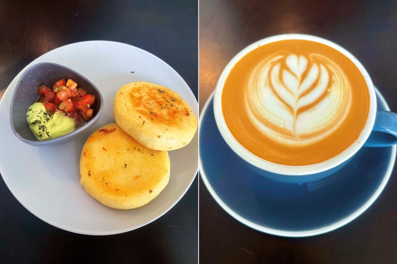 Buttery cheese-stuffed arepas with golden crusts and gooey insides pair perfectly with a latte