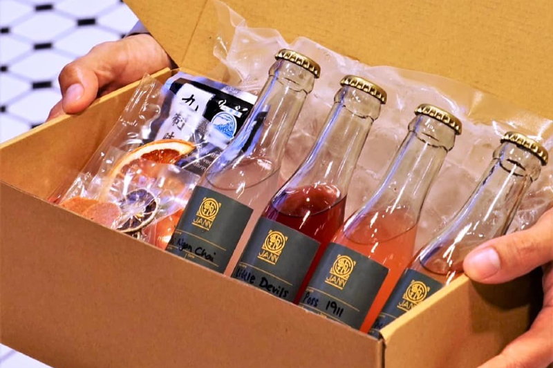 Treat yourself to a box of cocktails from Jann at Four Points by Sheraton Kuala Lumpur. Their Bak Wa (RM45) features bak kwa fat-washed mezcal, Cointreau, pandan and lemon. However, if you would like something sweeter, try the Asam Laksa (RM45), which includes tequila, ginger flower, asam keping, pineapple juice and calamansi.