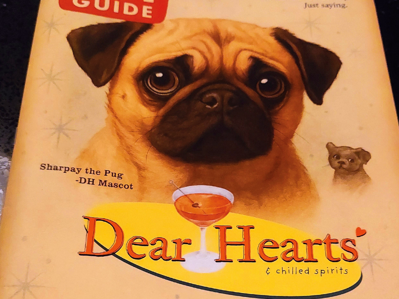 But silly gaffs and 1950s aesthetics are not the dominant ideas behind Yee’s establishment. Dear Hearts is lovingly dedicated to the founder’s late pug Sharpay Evans Yee (after the High School Musical trilogy’s blonde diva, the “best character ever”, according to Yee), whose likeness can be found in every nook and cranny — from her close-up shot on the collage wall to plushies and figurines on every surface, and even the owner’s tie. Beneath the comedic bits, one feels a powerful sense of sentimentality and compassion to be the dictating undercurrent of this bar. As the menu, stamped with Sharpay’s face, reads: “This bar runs on her spirit: warm welcomes, occasional sass and a soft spot for anyone just trying to make it through the day.” The pet-friendly space also allows small to mid-sized critters, and is home to the handsome resident kitty, Lee Hom.