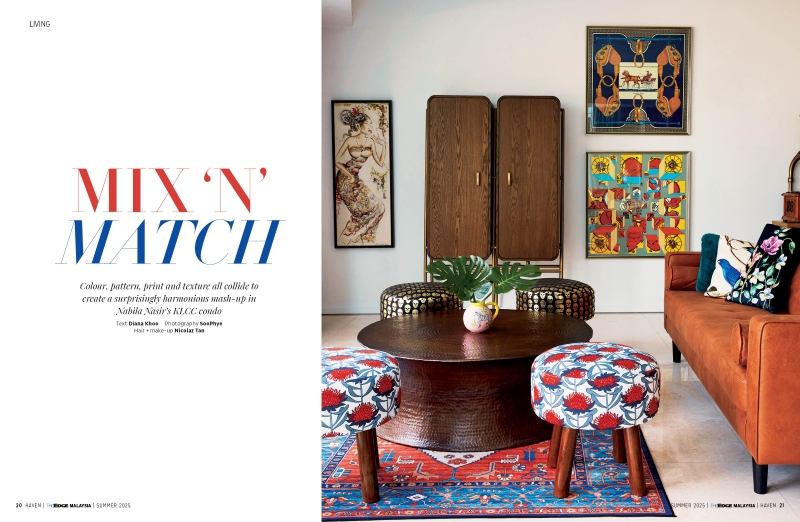 In an era where high-rise living is — pardon the pun — on the rise, it should come as no surprise that the other two homes featured in this issue are condominium units. One is a dramatically creative nook with bold artistic flourishes and Thai-Nusantara touches; the other is a paean to its owner’s love of clashing prints, colours and textures. Discover their stories from Page 20.