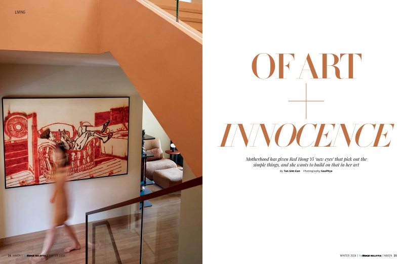 It has been four years since Haven dedicated an entire issue to art. But, as the old adage goes, good things are worth waiting for. For the last issue of the year, we could not be more pleased to have critically acclaimed artist Red Hong Yi open up her home to us. Most of us know the Sabahan creative superstar for her many groundbreaking works, dating from as far back as 2012 when she created a large-scale portrait of basketball star Yao Ming using nothing but a basketball dipped in red paint.