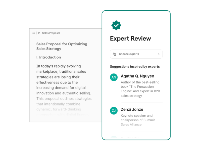 The now removed Expert Review feature allowed users to pick an "expert" to provide feedback on their work (Photo: Grammarly)