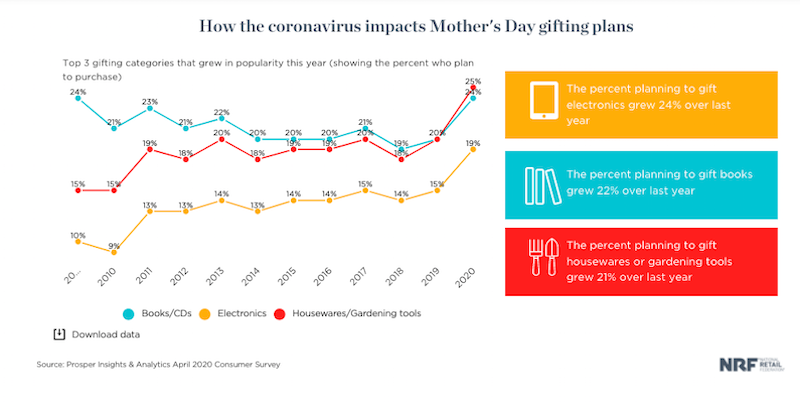 “Some customers are looking to make up for the fact that they can’t take mum out by sending her something a little extra special this year,” Prosper Insights Executive Vice President of Strategy Phil Rist said in the survey published on April 23
