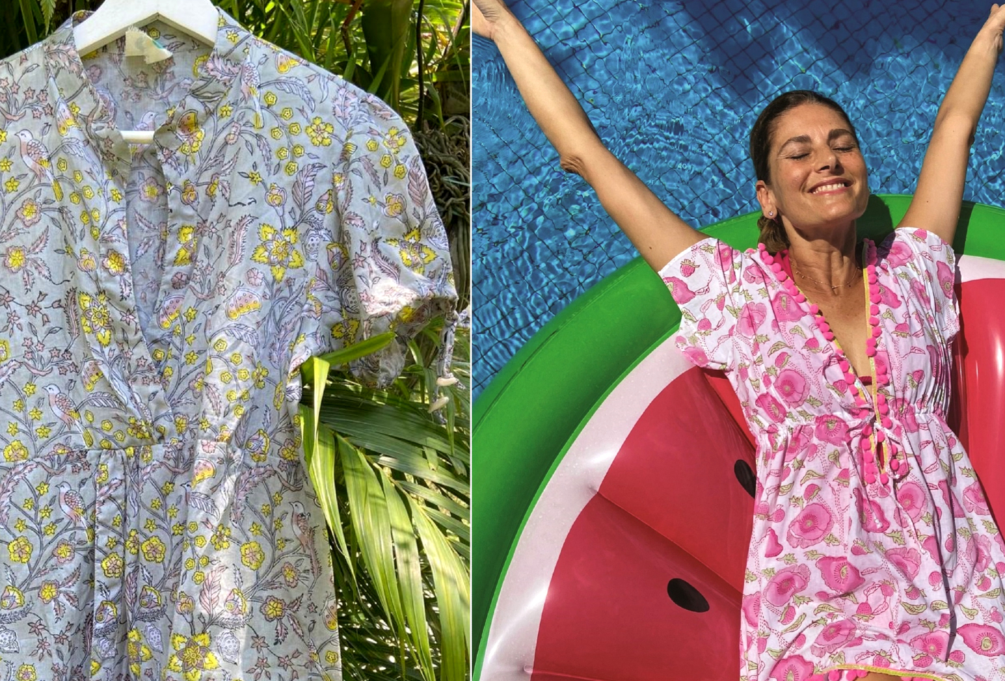 Summer. Colour. Handprinted fabric generally inspires me but, as a rule, my dresses are made for women of all shapes and sizes, all in limited quantities, as I believe your clothing should be as unique as you are. Matchali’s accessories line is inspired by my own needs when I am on holiday, such as my favourite Beach Kit, which comes with a relaxing pillow, bikini beach bag, pareo and macramé sunglass straps.
