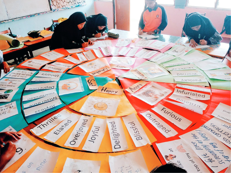 In an effort to help them learn vocabulary more effectively, she developed the Wheel of Learning, a multi-layered graphic organiser that encourages pupils to explore synonyms, related figurative expressions and idioms based on a single word. Using this method, Tan engaged previously indifferent, non-literate pupils and sparked their interest in learning English.