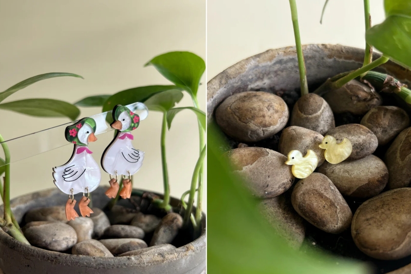 She allows her imagination to take the lead when designing products, delighting in adding playful details that spark joy in her creations. “For example, I divided a mushroom into two parts, so it looked like a skydiver — that kind of unexpected twist always makes me smile. I don’t stick to just one theme because I love exploring new ideas. It keeps things fresh and exciting, not just for me, but hopefully the people who wear my pieces too.”