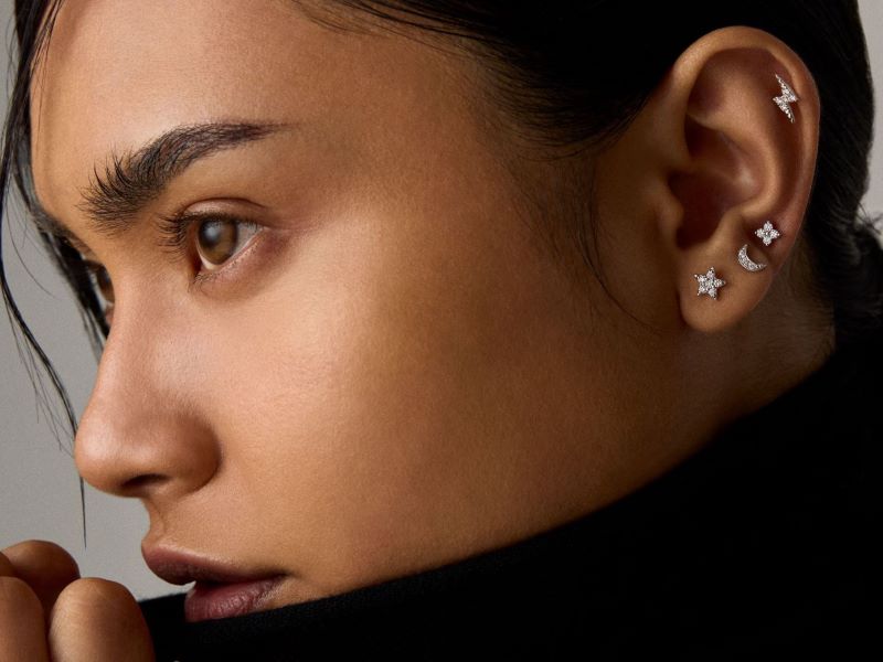 Diamond ear studs: Combining comfort and sophistication, these earrings are designed with the popular constellation ear-piercing trend in mind. Internally threaded and ultra-practical, they can be worn alone or stacked with huggies, charms, or hoops, turning your ear into a canvas for creativity. When it comes to earrings, the Diamond Drop Huggies and Lucky Horseshoe Earrings are versatile picks that transition seamlessly from day to night. Pair flat-back studs with these designs or add hoop charms for a playful yet refined ear stack.