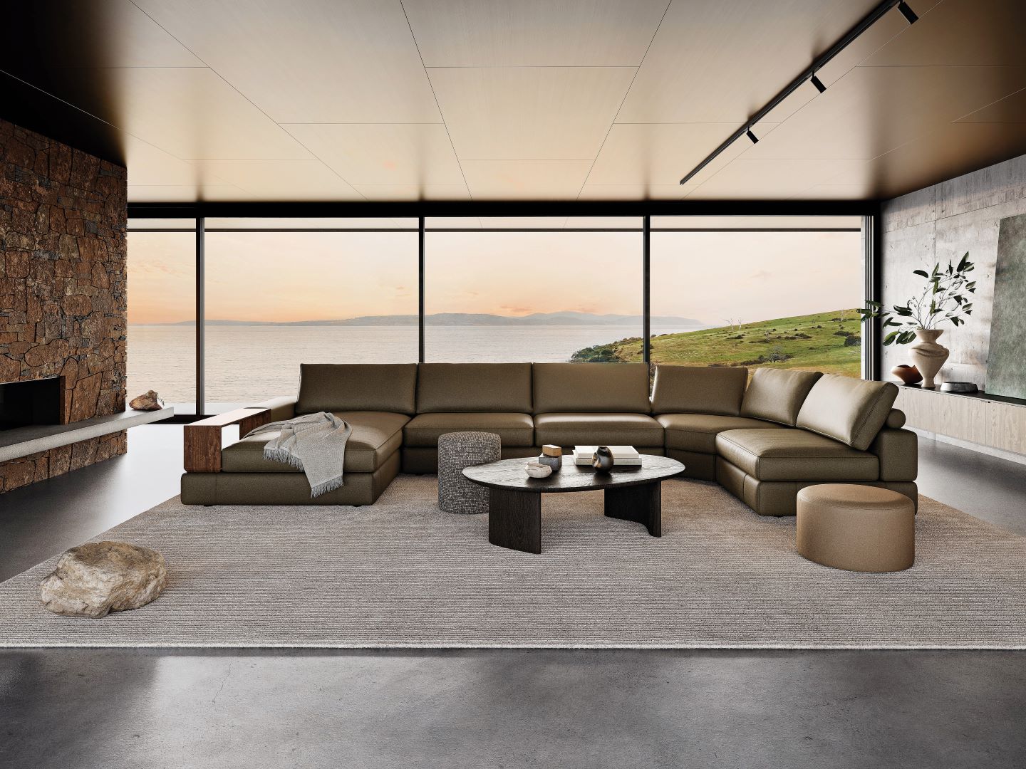 Jasper sets can be customised with premium timber veneer shelves, a wireless charging table, an LED reading light and the Sonos speaker bracket that integrates seamlessly with its Smart Pockets. A matching media console can be added to sit elegantly in the middle of the sofa too.