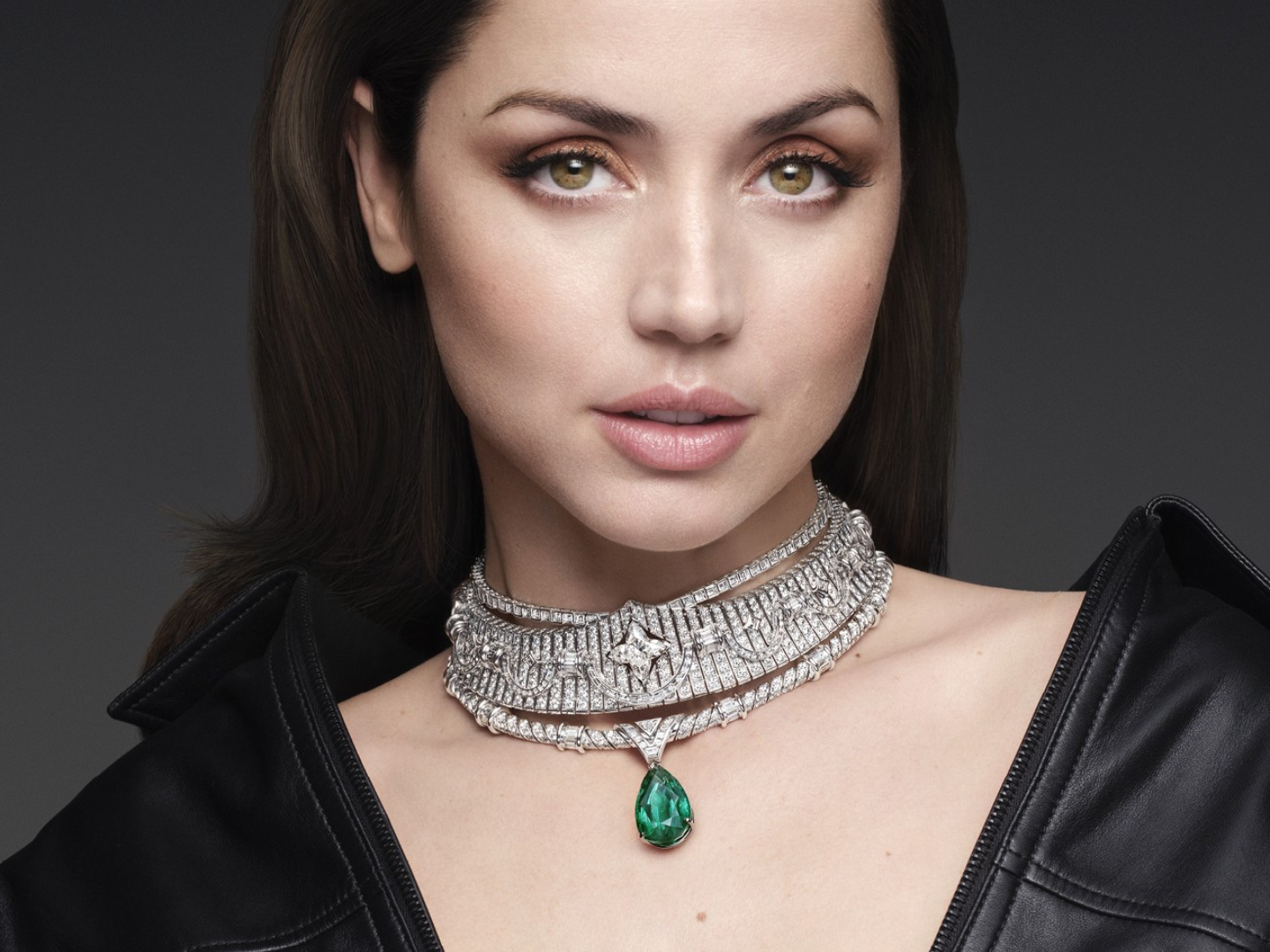 Ana de Armas in the stunning Apogée necklace in bold Louis Vuitton codes