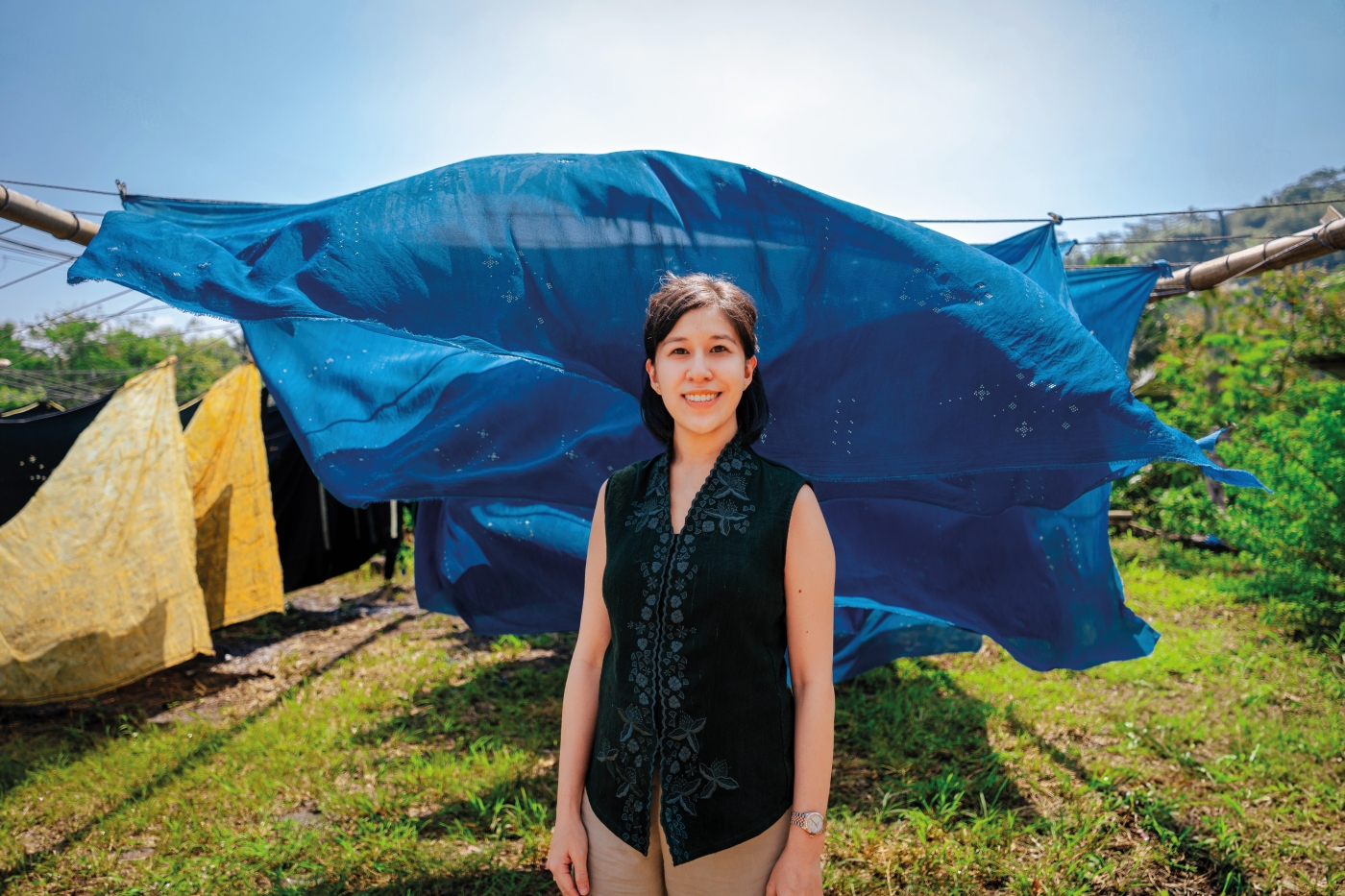 “Unfortunately, most indigo dyers use chemicals such as sodium hydrosulfite, which binds oxygen, during this stage. But then we cannot call it natural. So we used coconut sugar [instead]! This is why we call our dyes SweetIndigo. The interesting thing is if you opt for the chemical reduction process, it has to be disposed of after one use. But with sugar, it can be reused for years. Our vat is more than five years old. We just have to feed it sugar, paste and water, like a pet.”