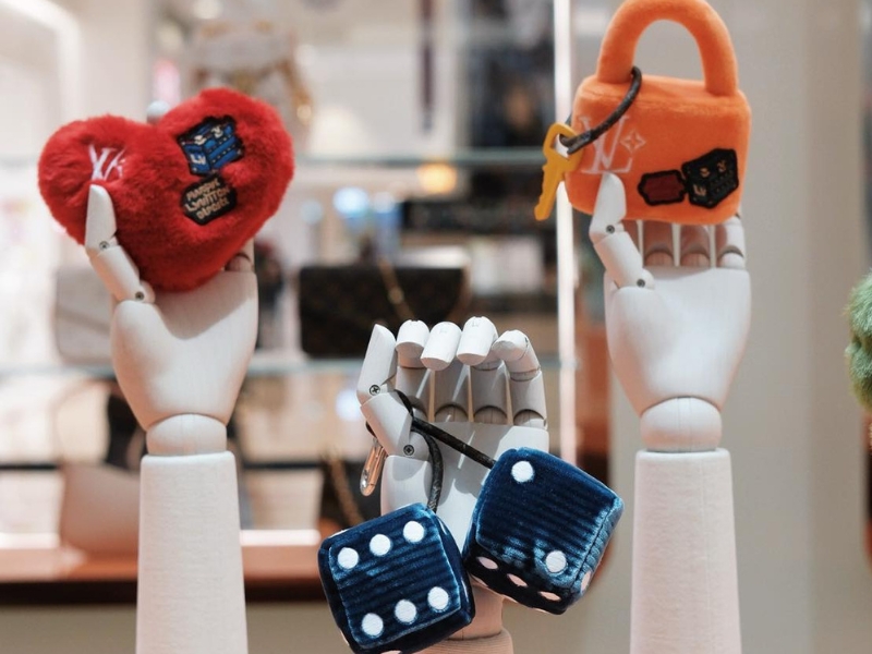The immersive experience places the spotlight on items meant for special exchanges in life, such as playful charms, collectible accents and refined details rather than the brand’s larger icons. Among the highlights are the new Vivienne Fashionista, dressed in Louis Vuitton’s signature codes, and the Louis Bear Bag Charms, inspired by Pharrell Williams’ runway shows. Exclusive sneaker beads (available only at the pop-up) allow guests to customise LV Trainers with a fanciful touch.