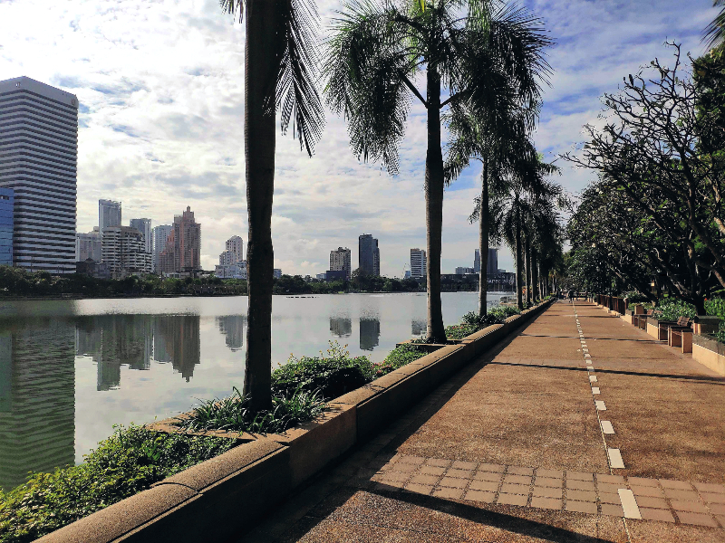 There was an inviting running track around the roughly rectangular 800m by 200m Lake Ratchada, whose shimmering surface reflected the skyscrapers outside the park’s boundary. As I jogged around the lake, I could see workers assiduously sweeping and scrubbing the track, paddle boats moored at one end of the lake and a monitor lizard slithering sinuously across the surface of the calm water.