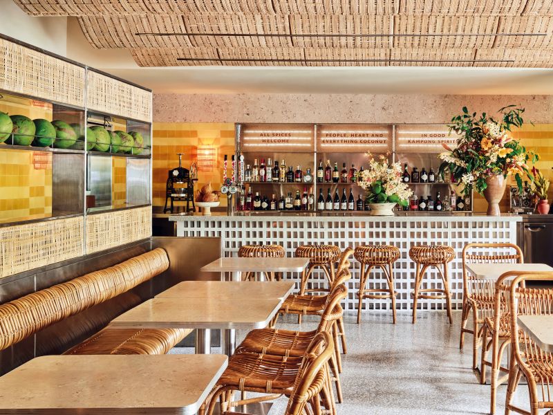 Tenants, too, have embraced Nan Chiau’s artistic attributes, weaving them into their identities. Modern Middle Eastern restaurant Artichoke and Sri Lankan dining spot Kotuwa have repurposed the distinctive jalousie windows and vintage wrought-iron grilles from the canteen, while the louvres have made their way into Alma House’s interior design. Leong even borrowed cues from the breeze blocks when he put together the newest outpost of The Coconut Club, a nasi lemak haunt that uses coconuts of Malaysia’s West African (MAWA) hybrid in Selangor and the kampung variety from Johor, both prized for their rich, creamy texture.