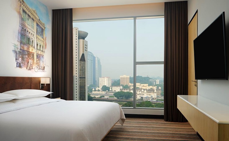 Four Points’ design is inspired by the stories of Southern Chinese migrants who sailed in to work in the country’s tin mines from the 19th century. Burnt-brick walls, floor to ceiling metal lattice work, customised wall art by local creative brand Loka Made, and a spacious seventh floor from which you get a sweeping view of the area combine a modern feel with a sense of nostalgia of days gone by.