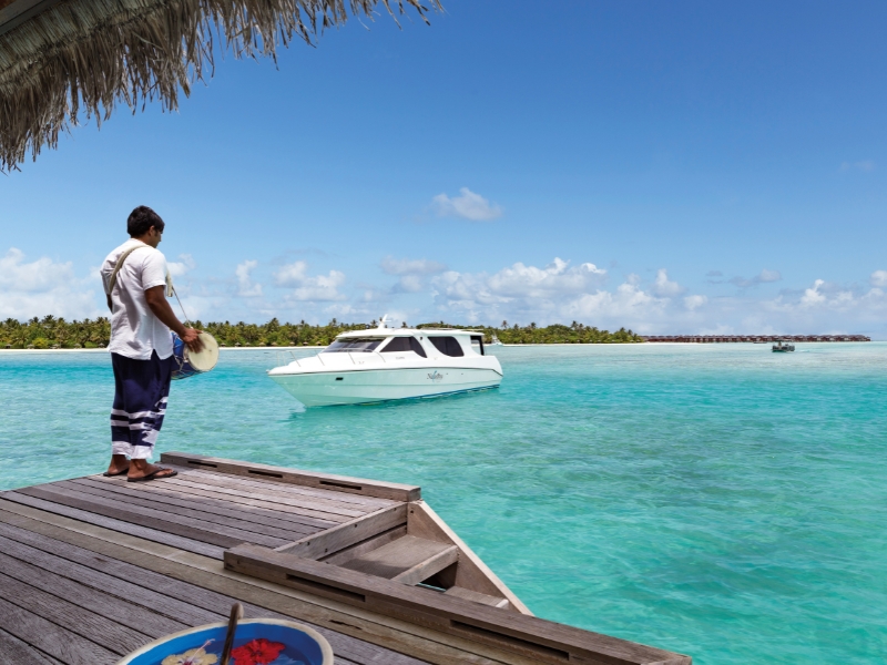 But first, let us not forget the Naladhu welcome. In typical Maldivian fashion, guests are met at the jetty and greeted by the rousing beat of the bodu beru drum. Less typical is Naladhu’s bespoke touches, such as walking on freshly-scattered rose petals all the way to the villa while sipping from a young coconut, or the striking of a gong to officially signify that the vacation has well and truly begun.