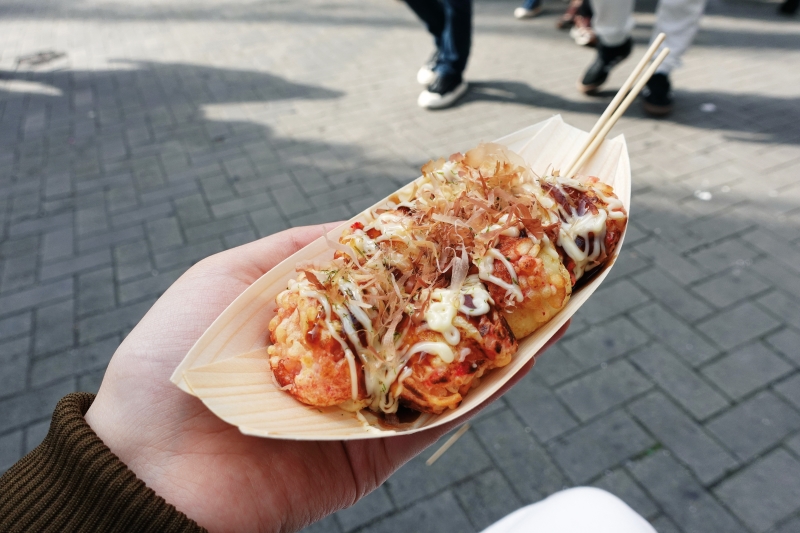 While you are in the area, check out the street food vendors in bustling Dotonbori. One of Osaka’s staple dishes is takoyaki and here you can find many stalls, each with a distinctive (and massive) octopus mascot, selling the snack. Before anything else, though, be sure to have enough cash in hand as some shops only accept notes. You do not want to leave the long queue and have to start again from the beginning.