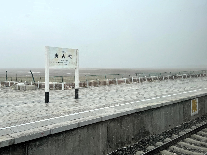 Tanggula Pass, the highest point on the route at a mind-numbing 5,072m above sea level, was marked by large red Chinese characters declaring such, beside the railway.