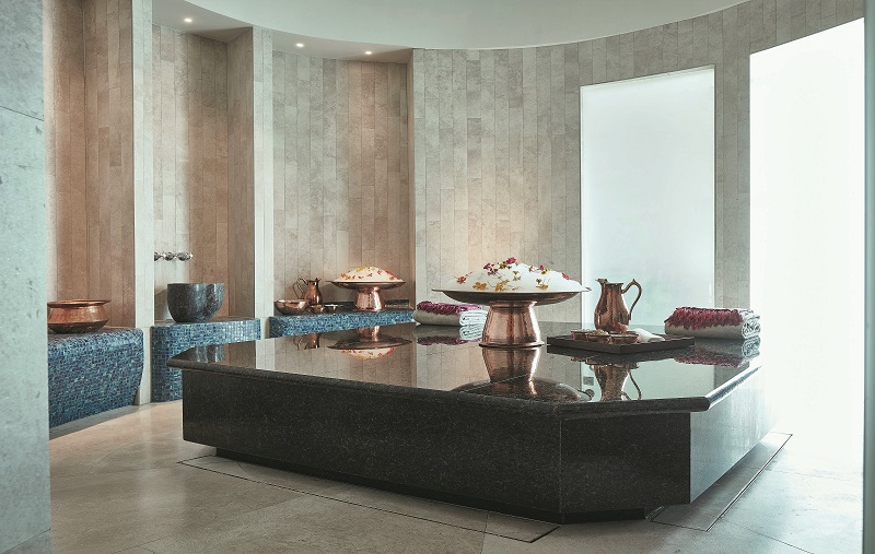 The spa's hammam is sybaritically stylish - The signature egg custard tarts (RM68) at Hai Yan are a must to order and come in three variants: original, caramelised and topped with bird’s nest and gold leaf.