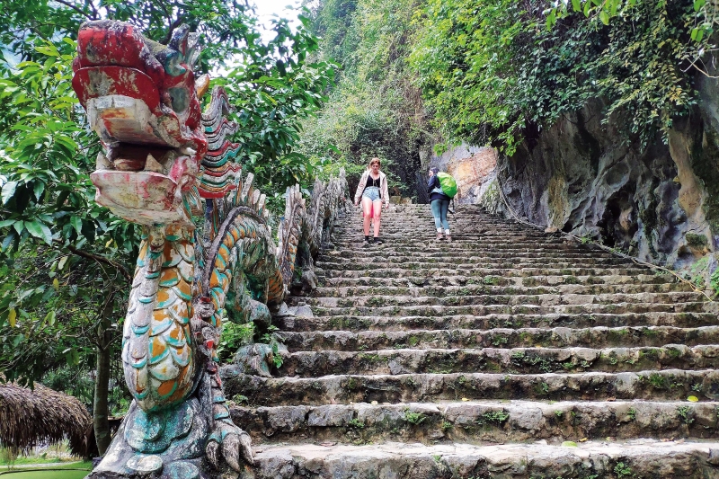 Hang Mua Cave was a short, airy tunnel leading to a garden. What beckoned were the rough stone steps that wound steeply up the limestone hill.
