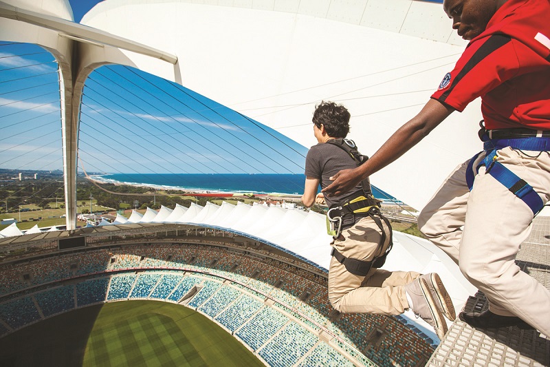 Thrill-seekers can attempt the Big Rush at the Moses Mabhida Stadium, which holds a Guinness World Record for the tallest swing. Step off the jump platform and embrace a 60m free fall, accelerating to a speed of over 120kph and swinging in a huge arc over the football pitch. When the swinging finally stops, a recovery winch will bring you smoothly back to the jump platform.