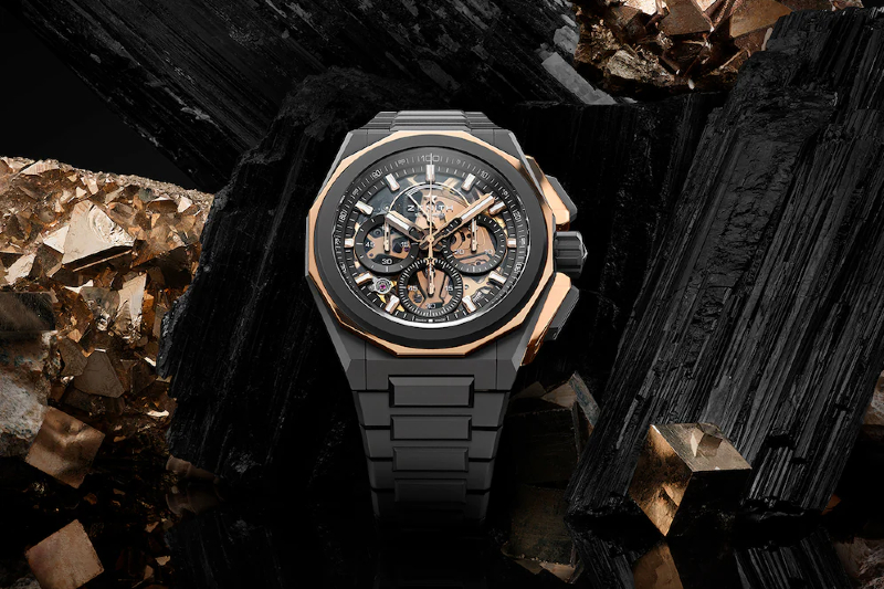 7. Zenith pushes the boundaries of hyper-horology with the ultra-rugged Defy Extreme. This new illustration of superlative precision comprises a 45mm case, pronounced lines and 200m of water resistance — a remarkable feat for a chronograph with an exhibition caseback. A transparent sapphire dial is encased by three expressions of titanium: matte, polished or two-toned with gold, secured by matching bracelets or straps in rubber or Velcro.