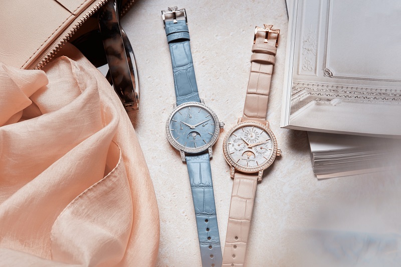 With diamonds dotting its bezel and a mother-of-pearl dial, Vacheron Constantin’s Traditionnelle Perpetual Calendar Ultra-thin exudes an unmistakably feminine aesthetic. It is equipped with the Calibre 1120 QP, which elegantly displays the days, dates, months and years on a four-year cycle, including a leap-year indication, without any need for correction before 2100. This calendar display is complemented by a moon-phase indication at 6 o’clock.