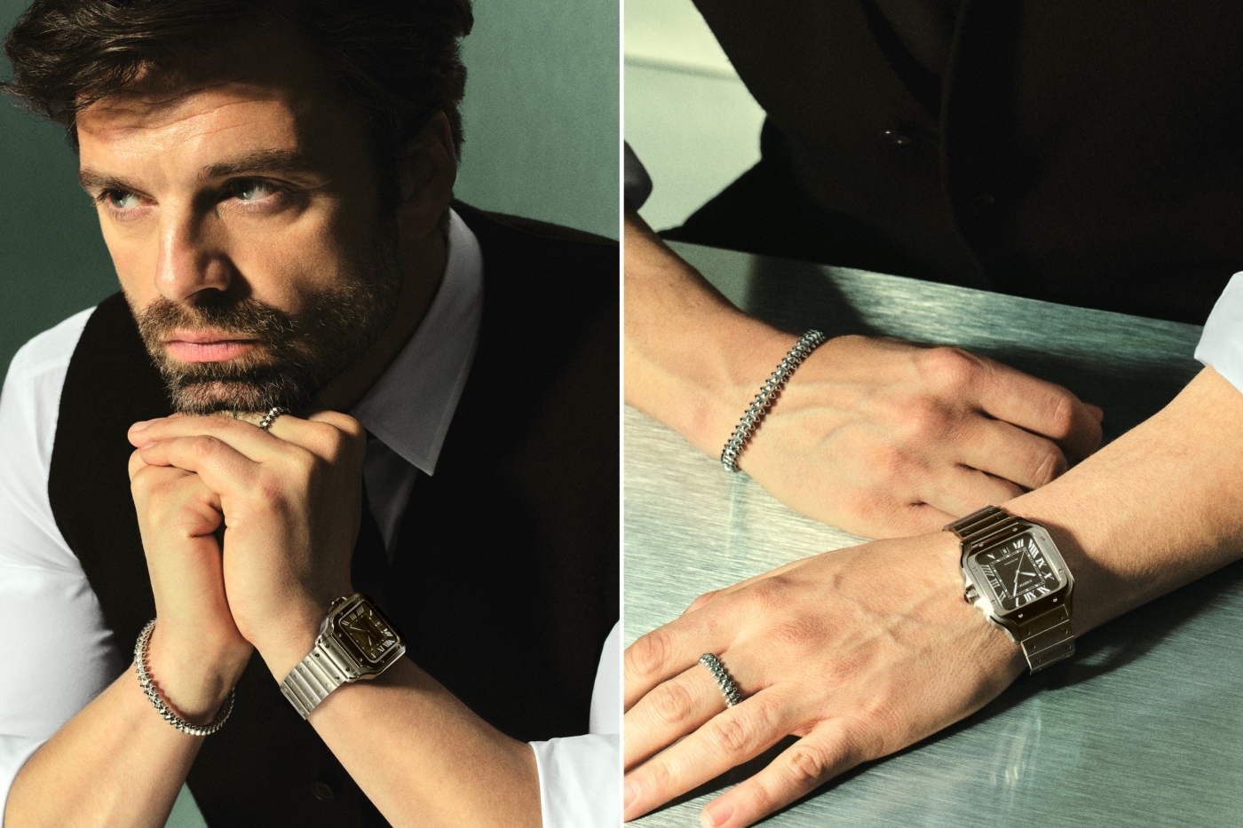 Sebastian Stan wearing the Santos Black Dial (All photos: Cartier)