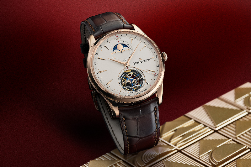 Modern, elegant and visually arresting, the campaign was shot in a minimal yet richly dramatic setting of red and gold — colours that symbolise good fortune, happiness and wealth and capture the joy and vibrance of the festivities. The stage is dominated by a large golden sculpture based on Jaeger-LeCoultre’s new Art Deco-inspired alphabet created by Alex Trochut — the letter “M”, signifying the Master Ultra Thin Tourbillon Moon, which Yee sports on his wrist.