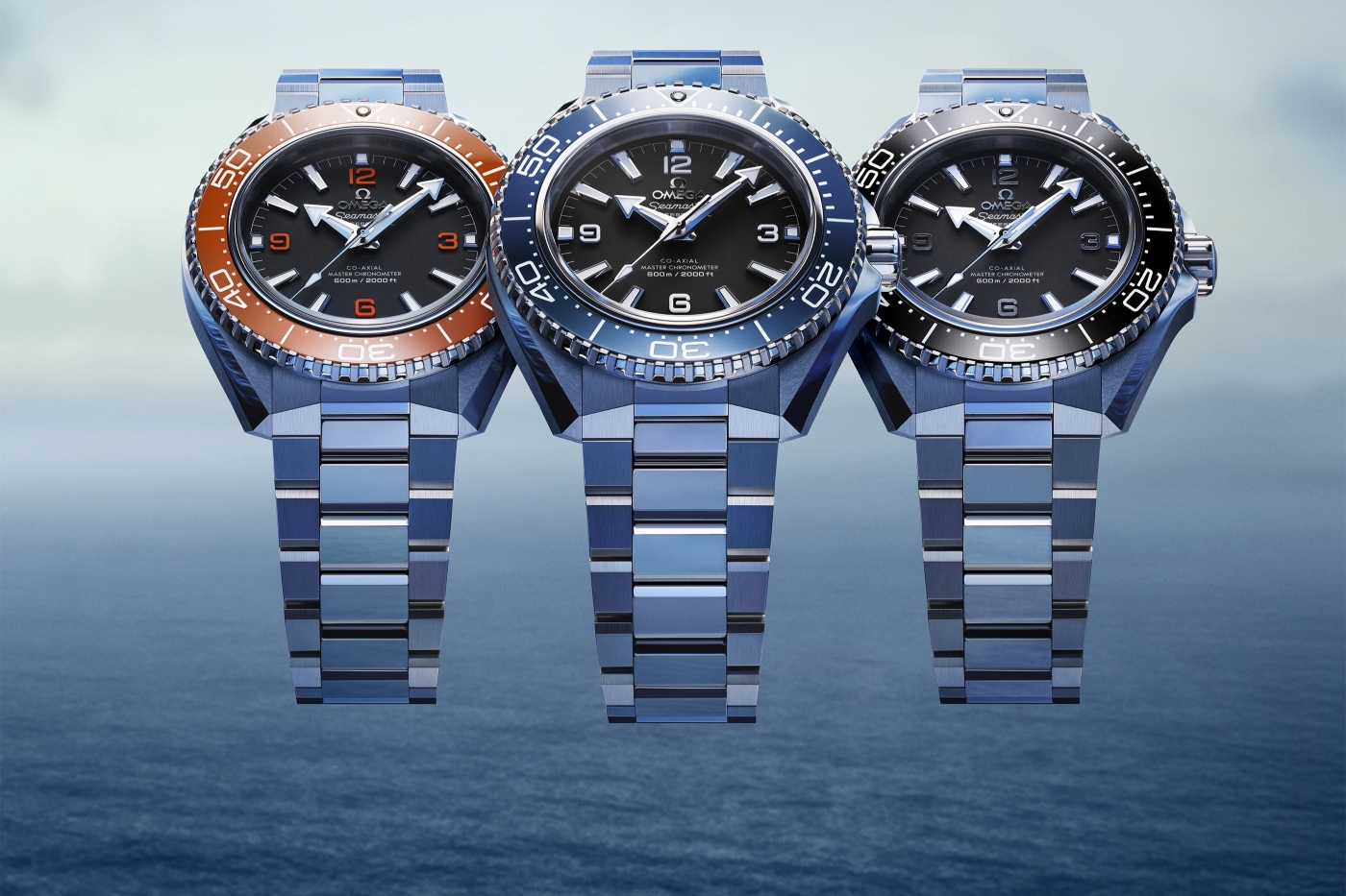 The timepieces in orange, blue and black (All photos: Omega)