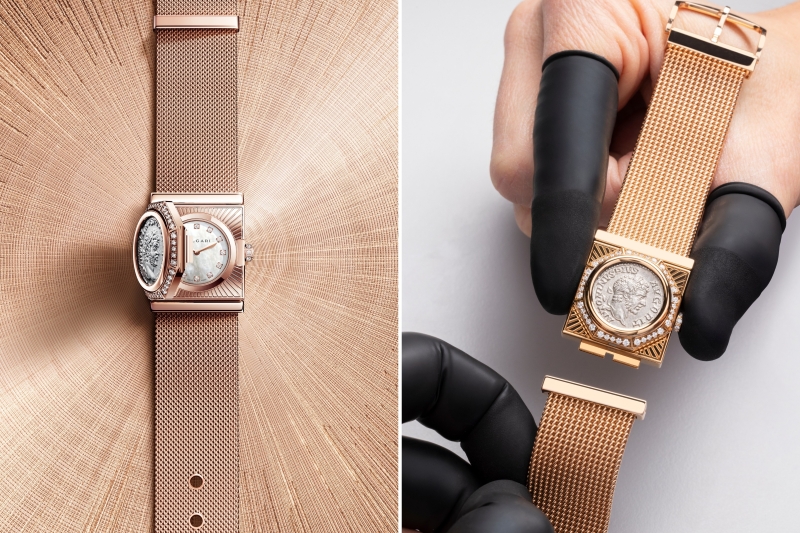 A bridge across epochs, the Maglia Milanese Monete secret watch centres on an authentic ancient silver coin from 198–297 AD bearing the likeness of Roman Emperor Caracalla within a diamond-set octagonal frame. For the first time, Bvlgari celebrates the artistry of the Renaissance with a supple Milanese mesh bracelet, meticulously hand-woven from threads of solid gold. Marking a collection debut, the distinctive timepiece features an elegant pin buckle for a tailored look. Tiny but mighty, it is driven by the Piccolissimo BVP100, the world’s smallest round manual-winding movement with a diameter of 13.50 mm, thickness of 2.50 mm and a weight of just 1.9 g.